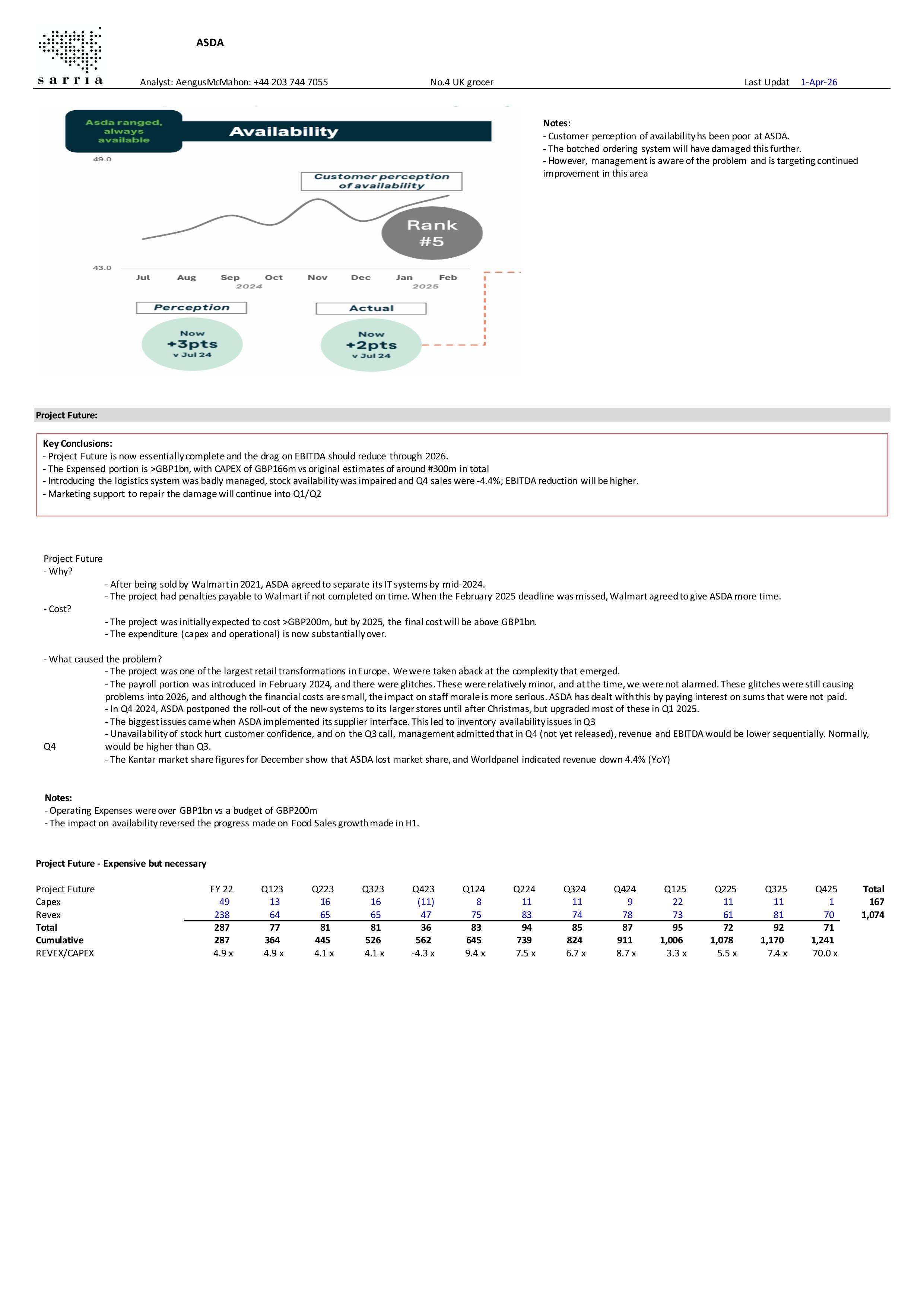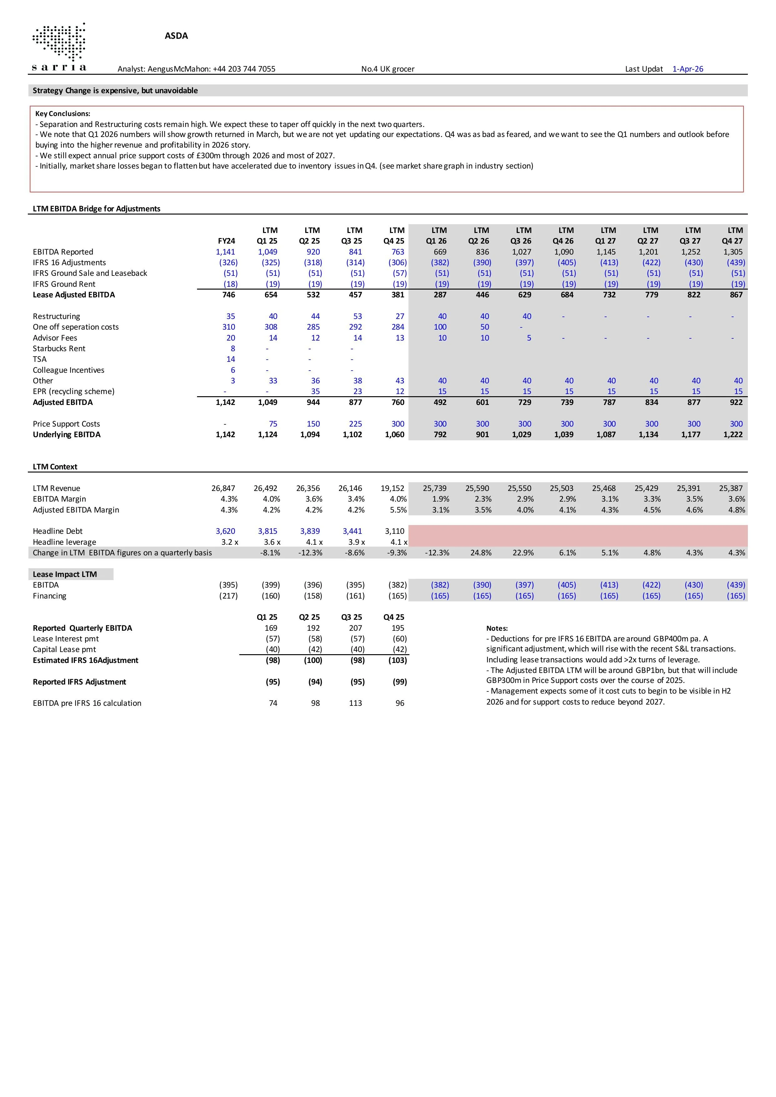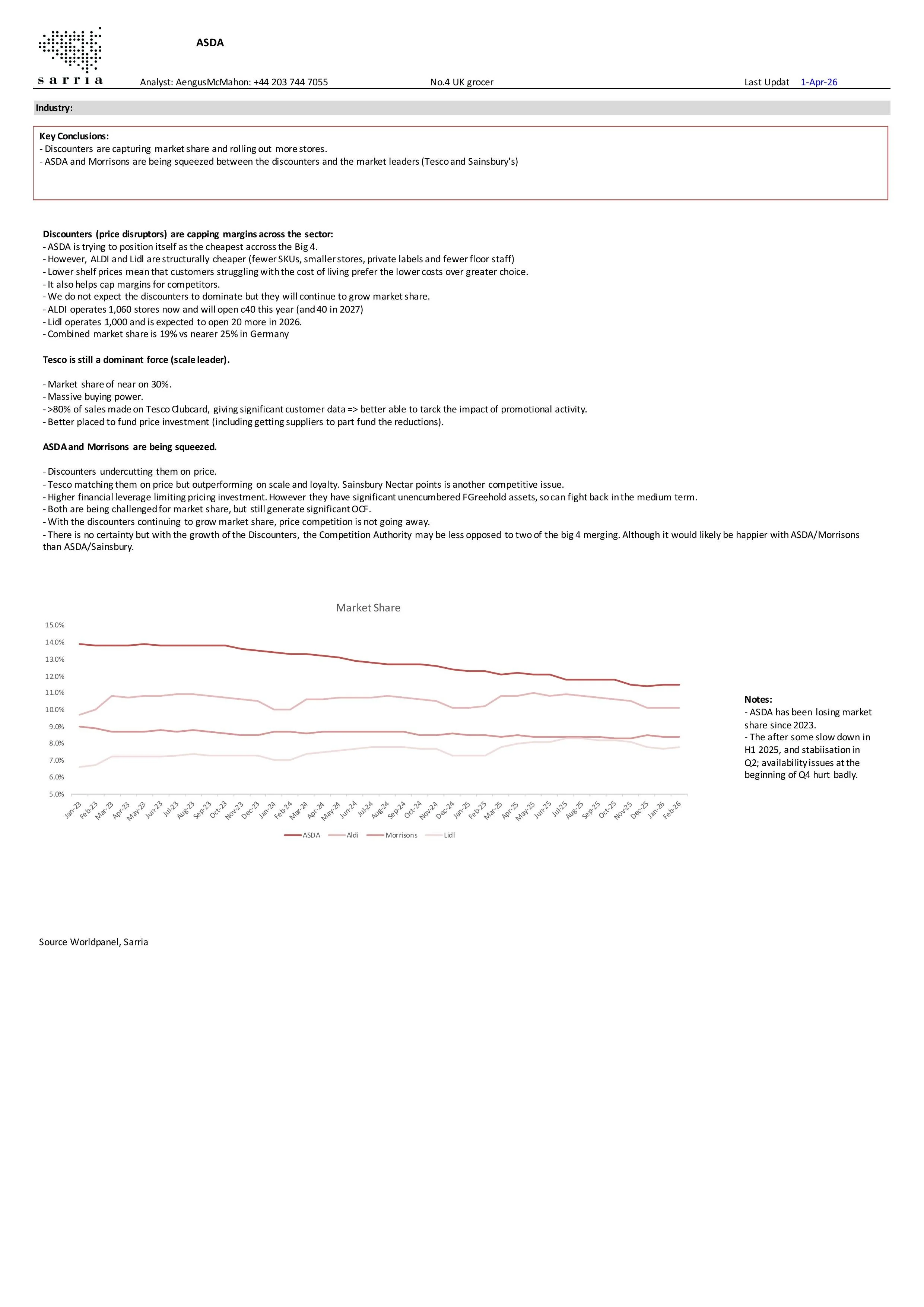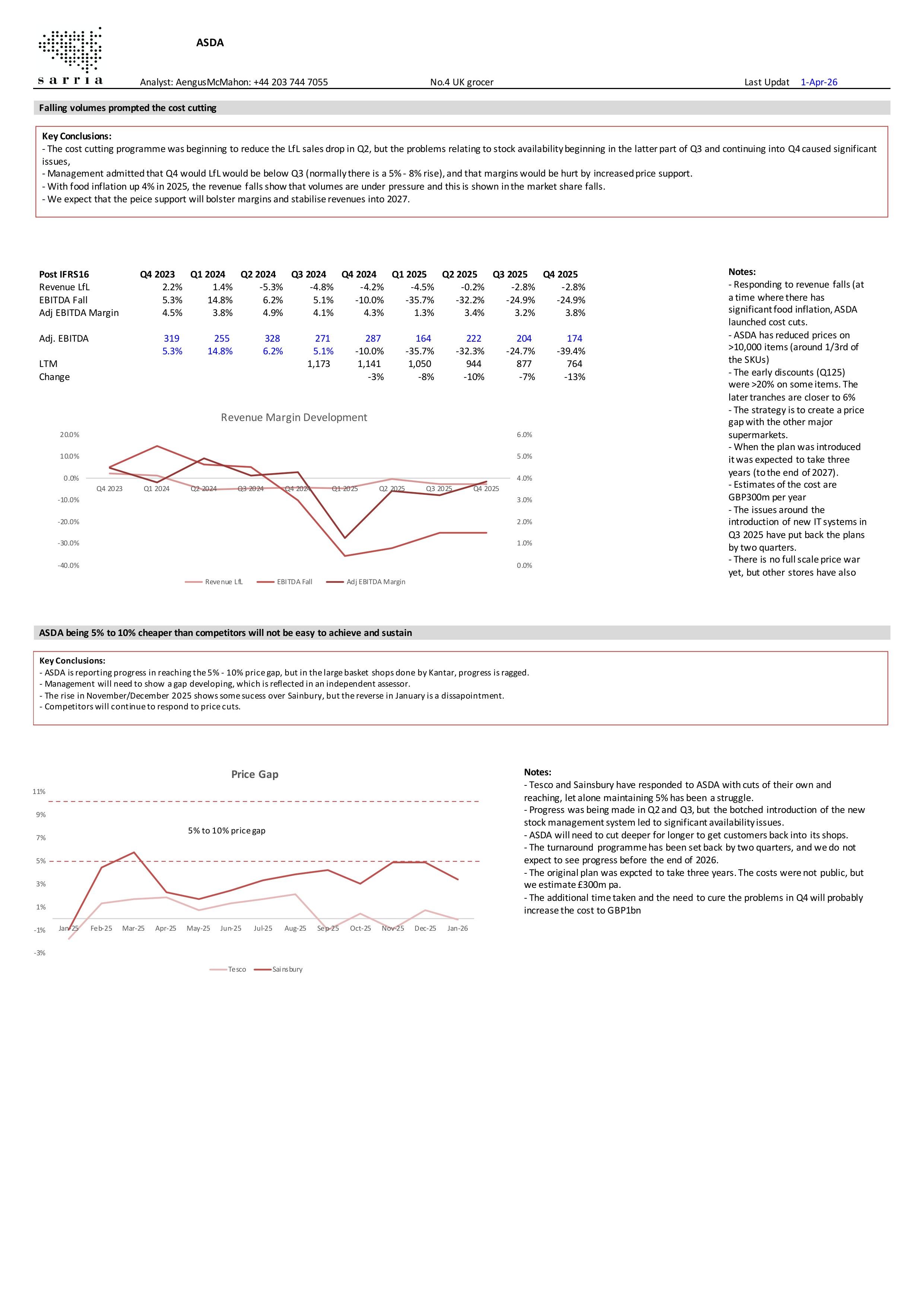 ASDA’s Q4 results were expected to be bad and were. Also, whilst the pace of decline has slowed in the first few months of 2026, revenue has