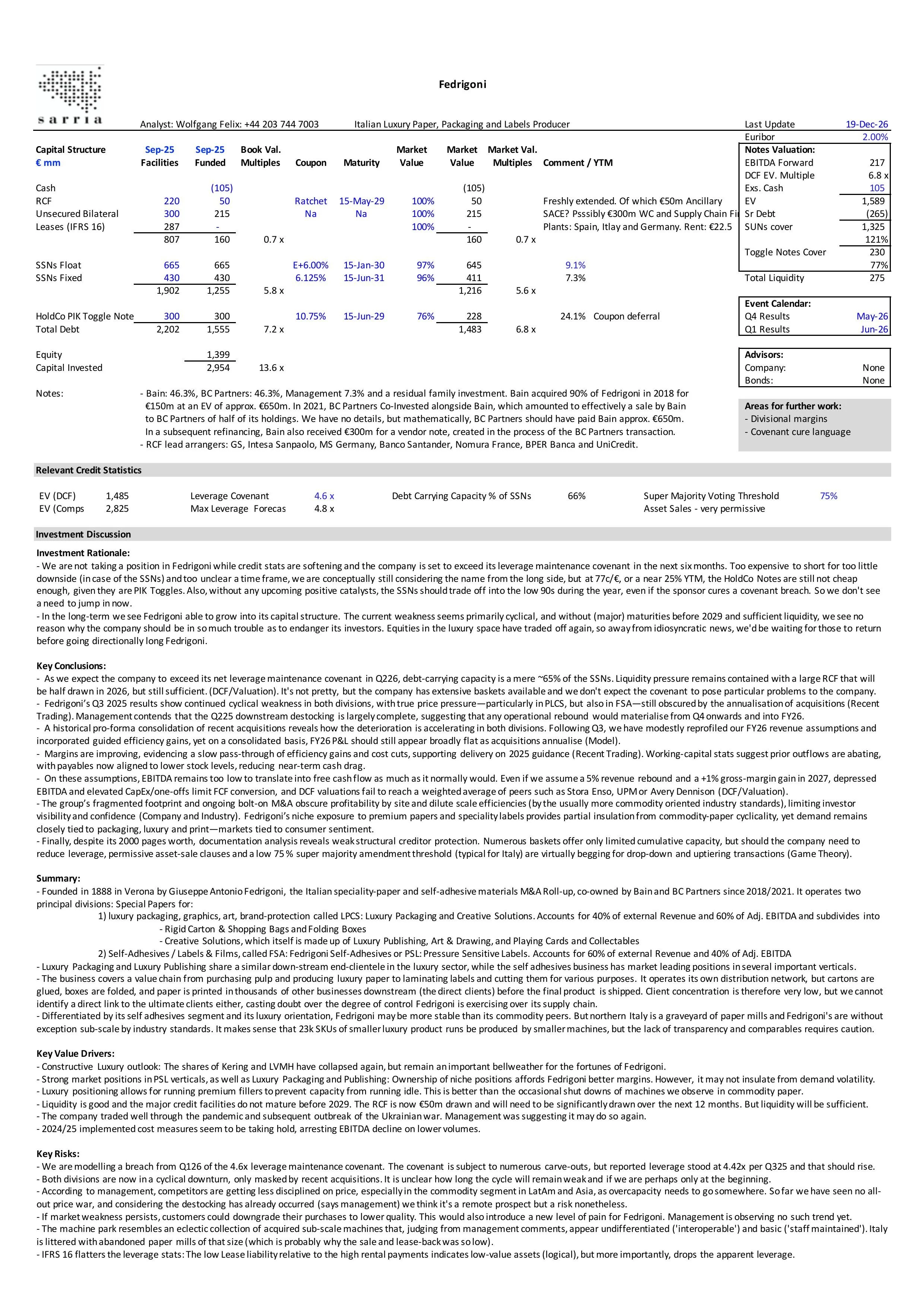 Please find our updated analysis on Fedrigoni here.