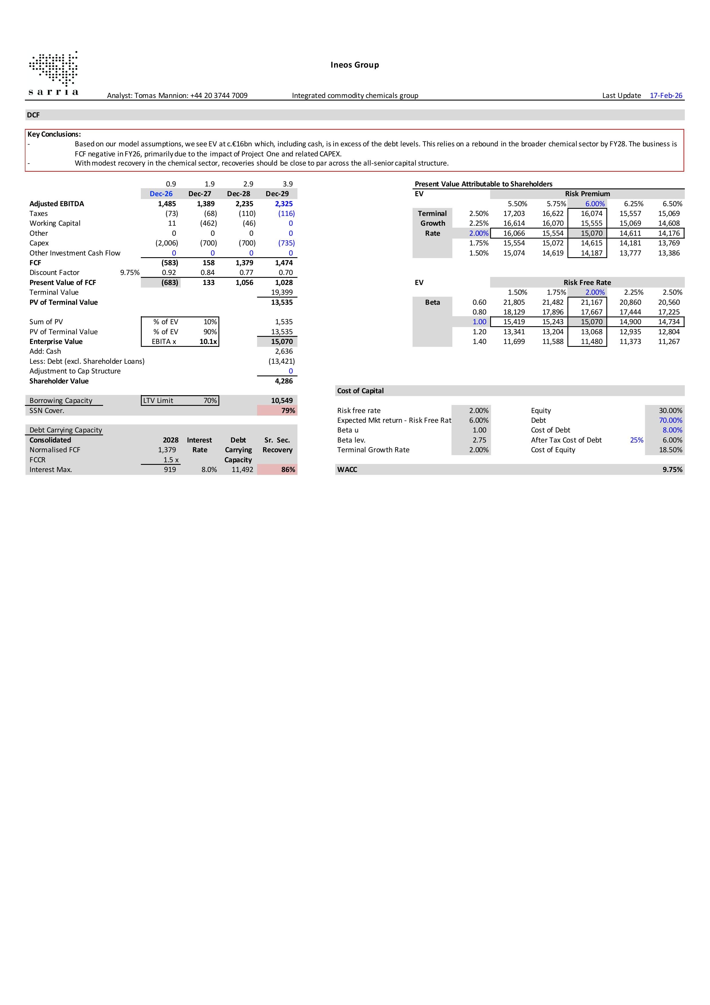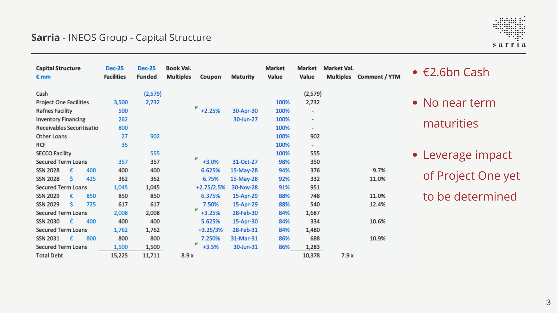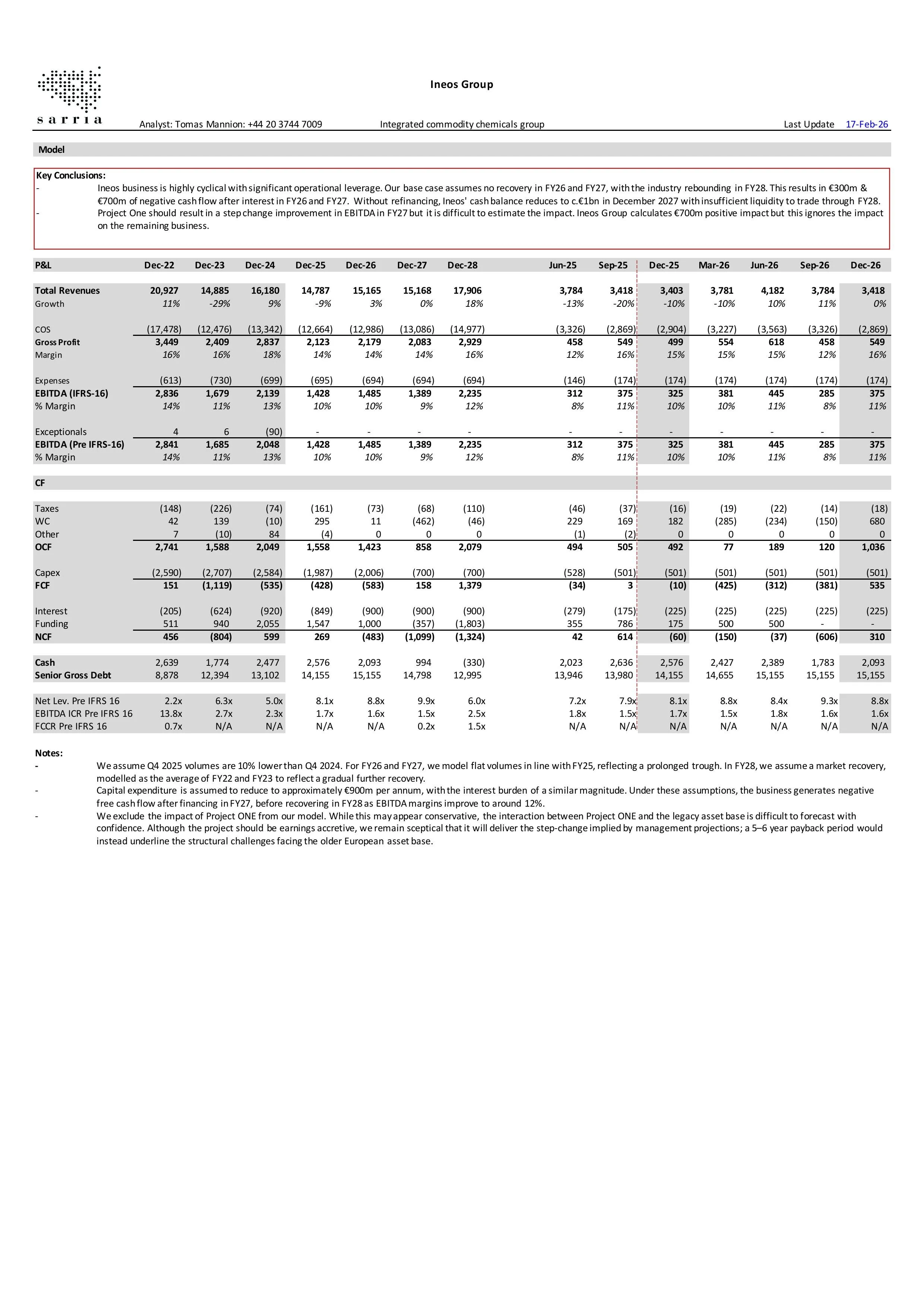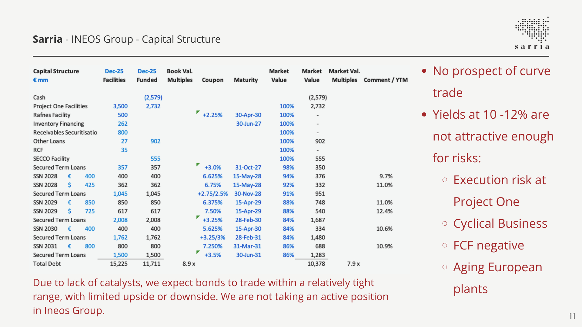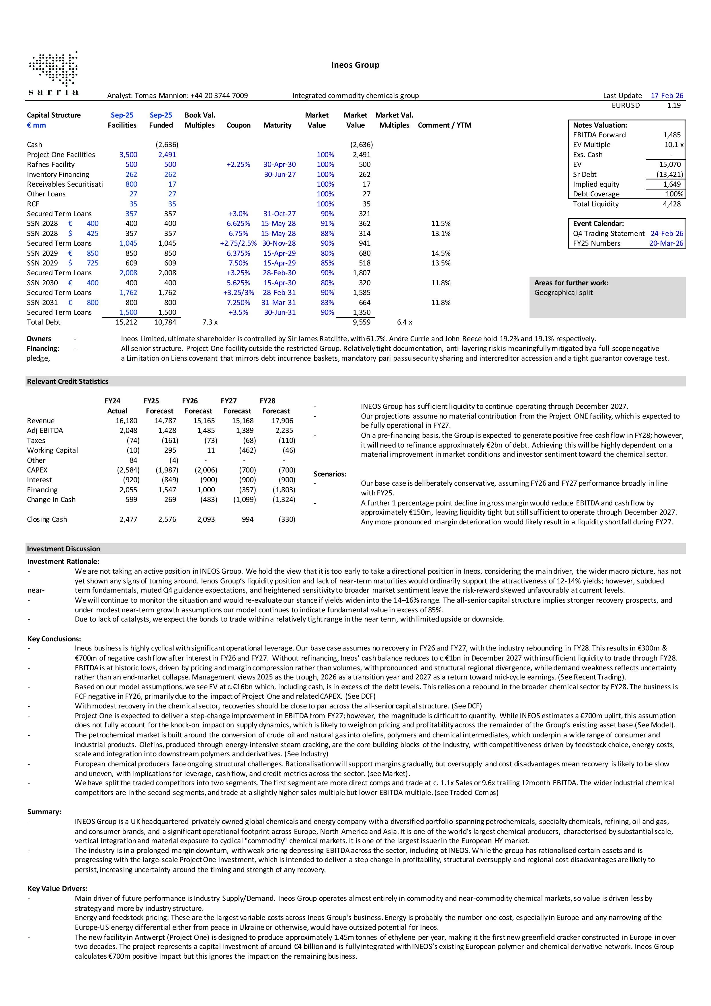INEOS Group has sufficient liquidity to operate through December 2027, even if volumes and pricing remain at FY25 lows. However, with yields at 12–14%, constructing a compelling long thesis is