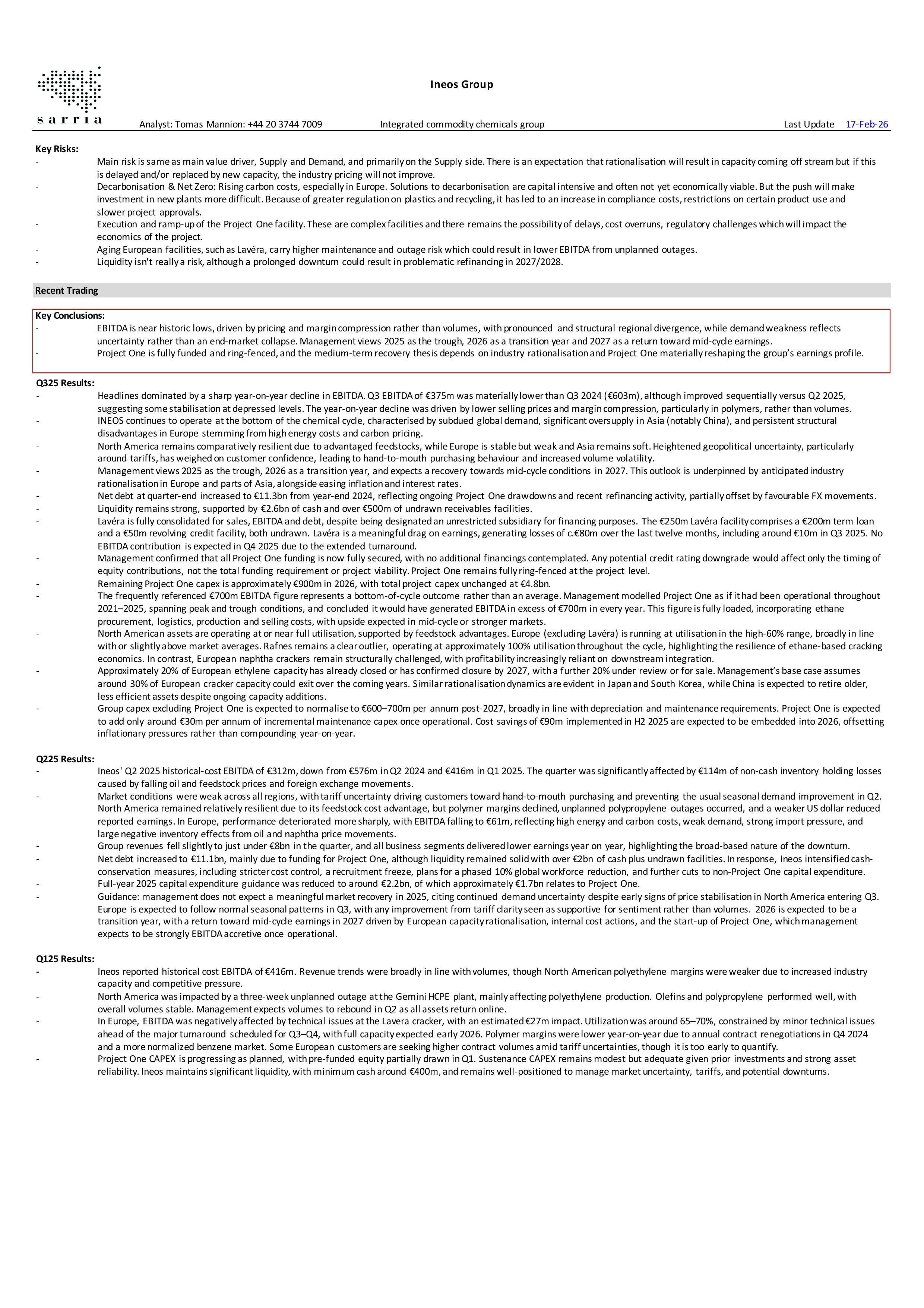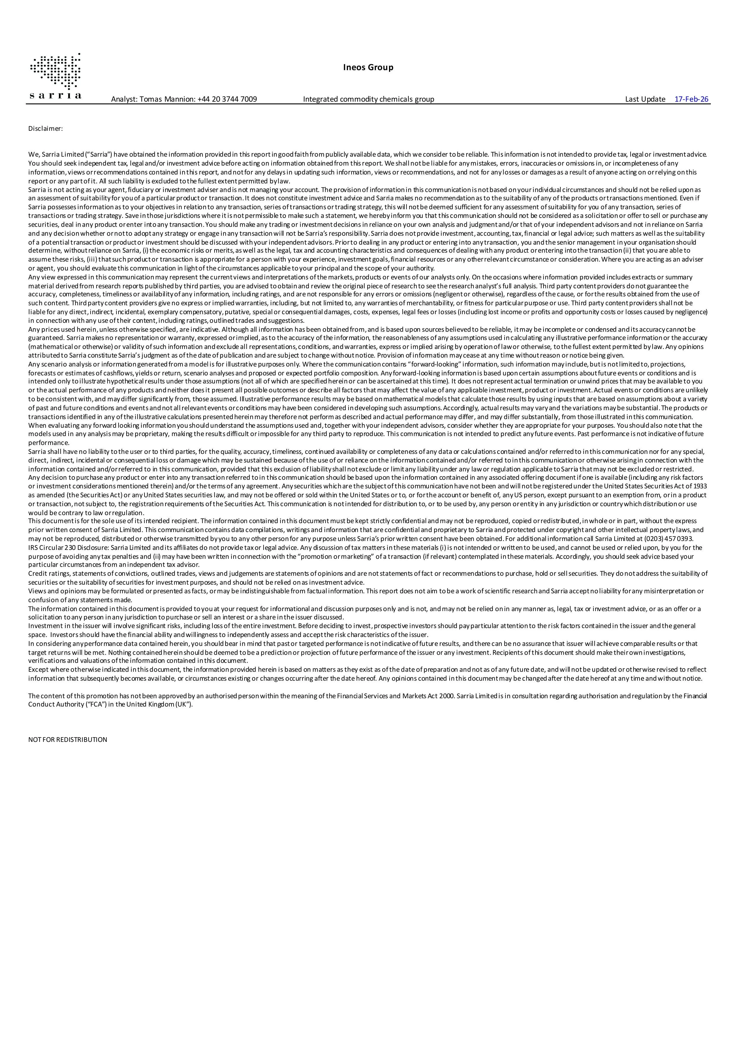 Ineos Group released preliminary Q4 numbers and hosted a two-hour conference call yesterday. Management offered little