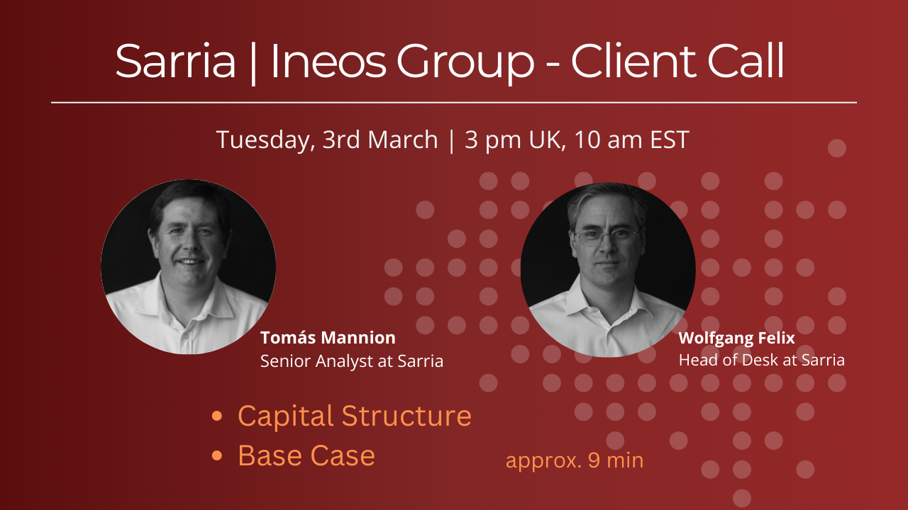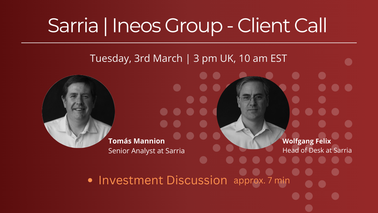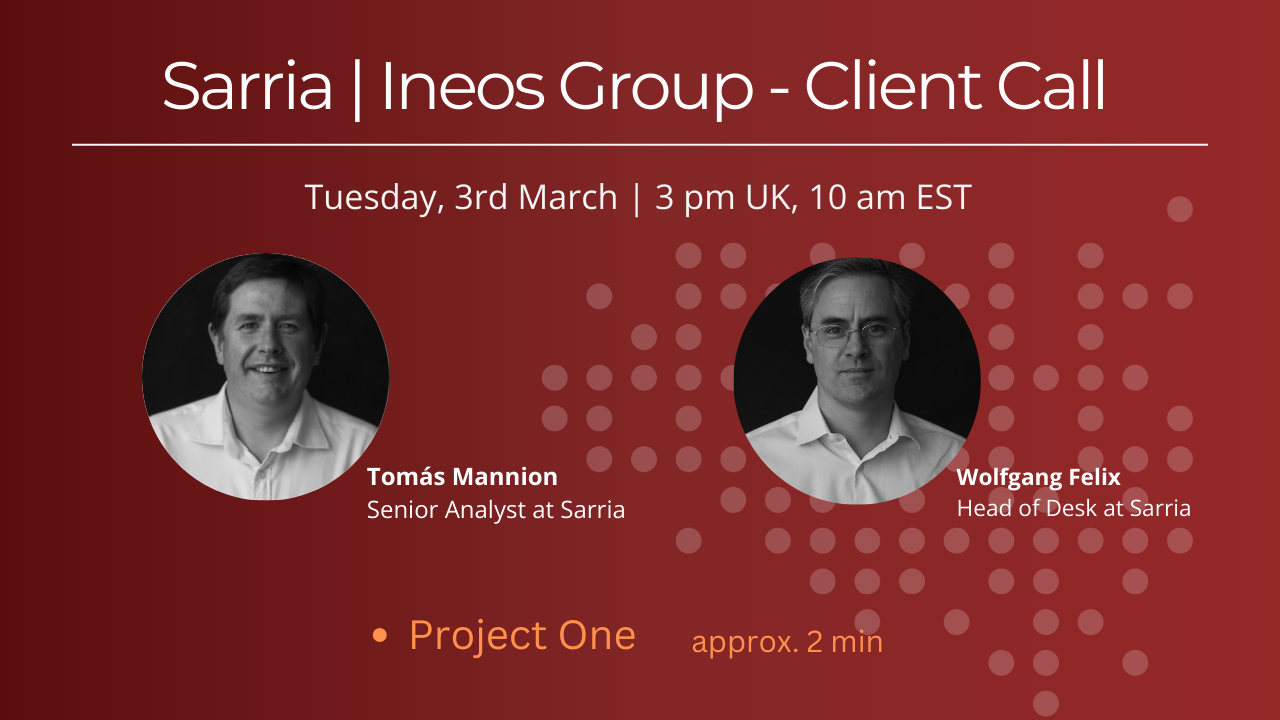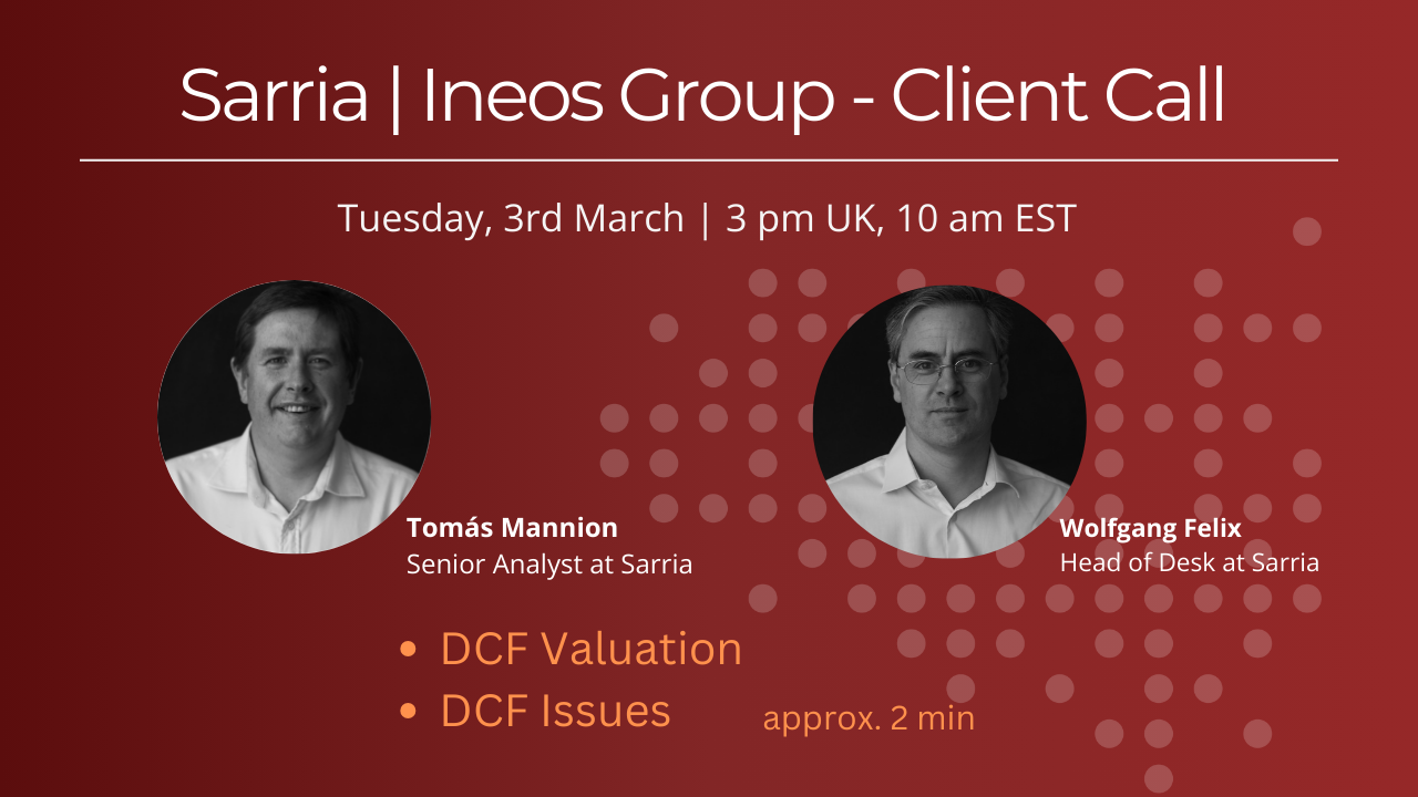 Sarria | INEOS Group - Client Call , Tue 3rd March, 3 pm UK | 10 am EST