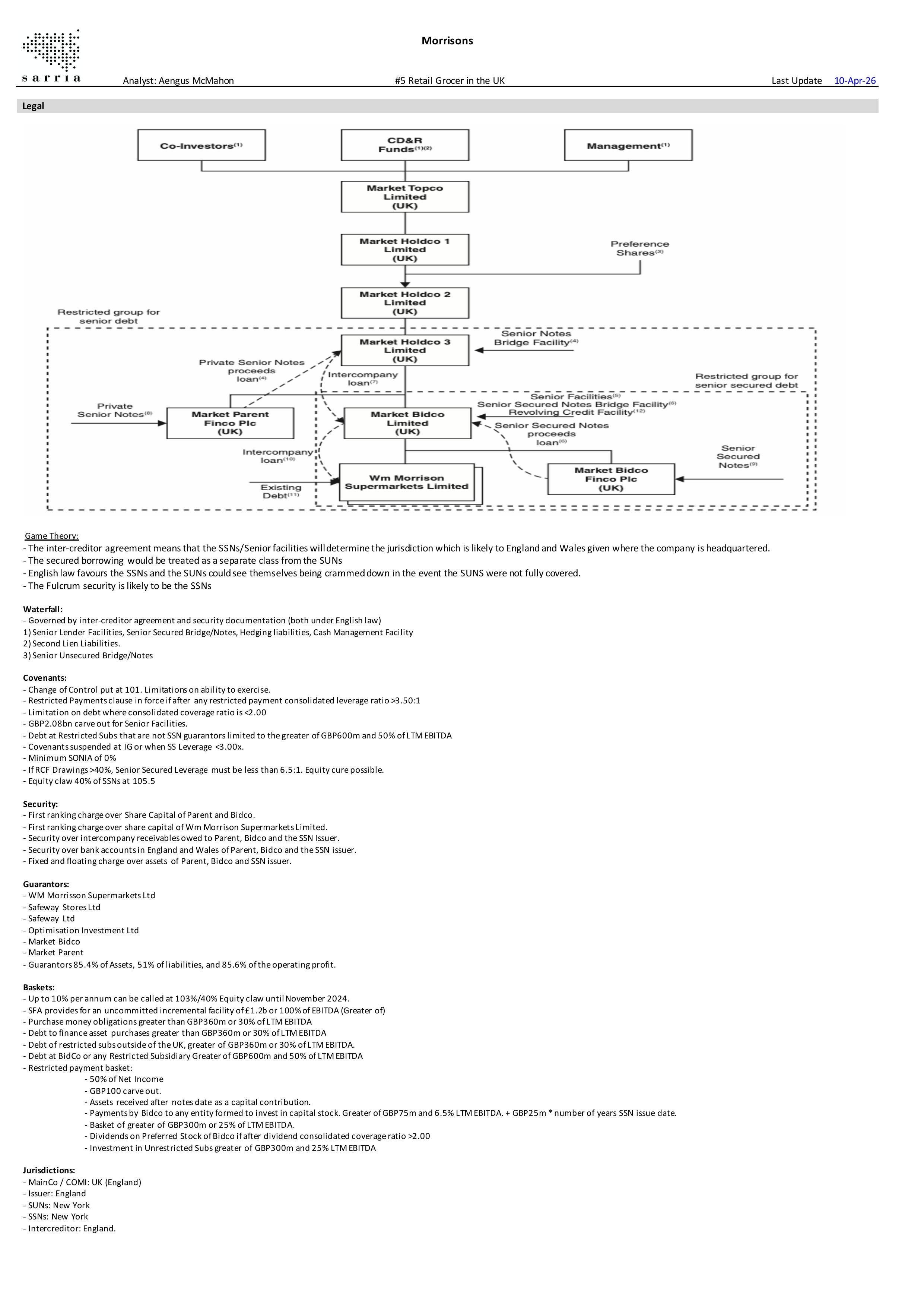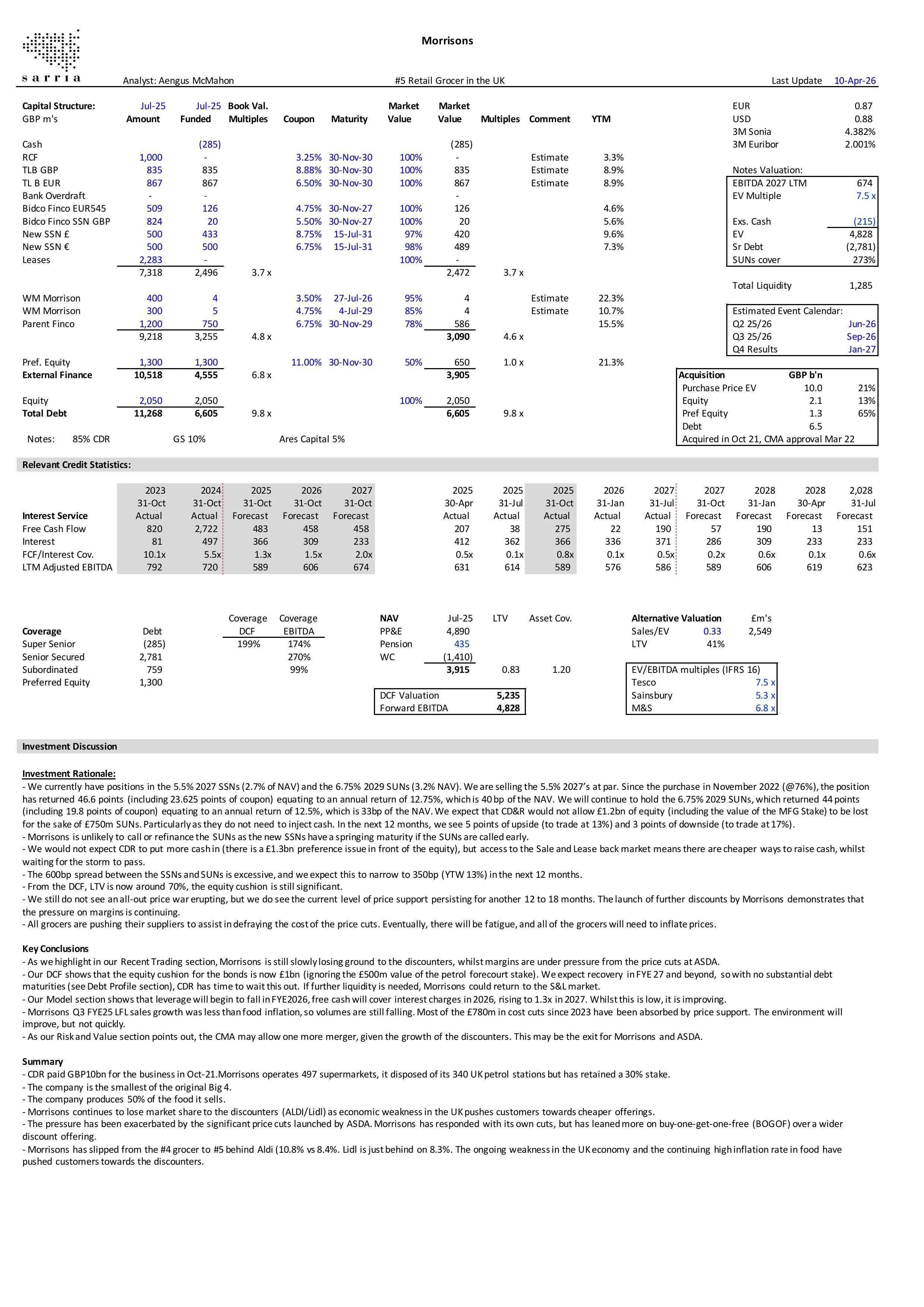 Morrisons is pushing out some of its senior secured debt and up-tiering around half a turn of SUN’s debt. The transaction makes sense as