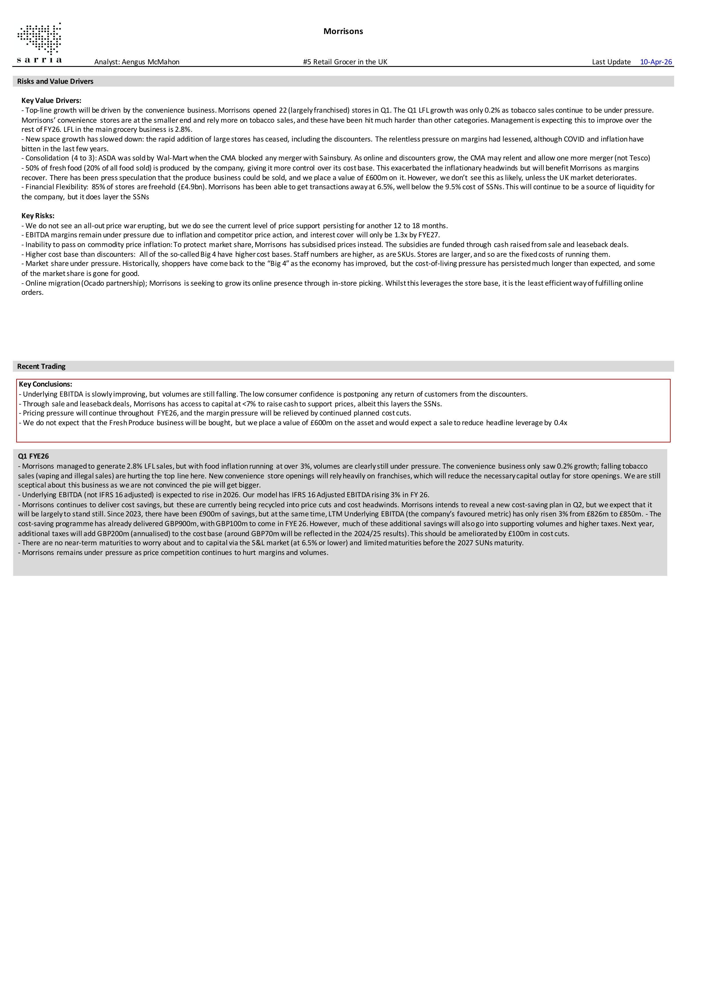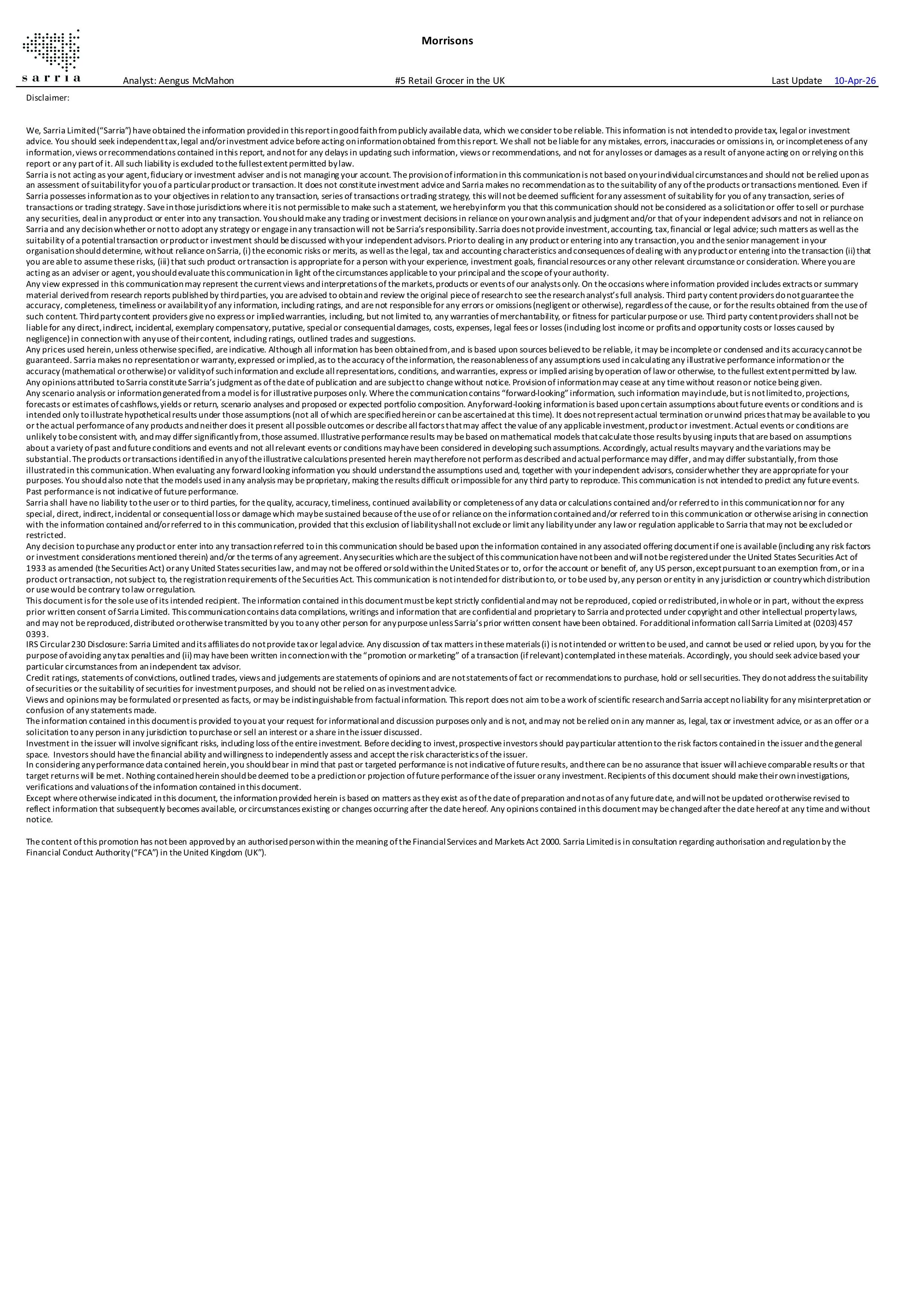 In October 2025, we estimated the value of the full Morrisons Pharmacy business to be £170m. Press reports now suggest only a partial sale of