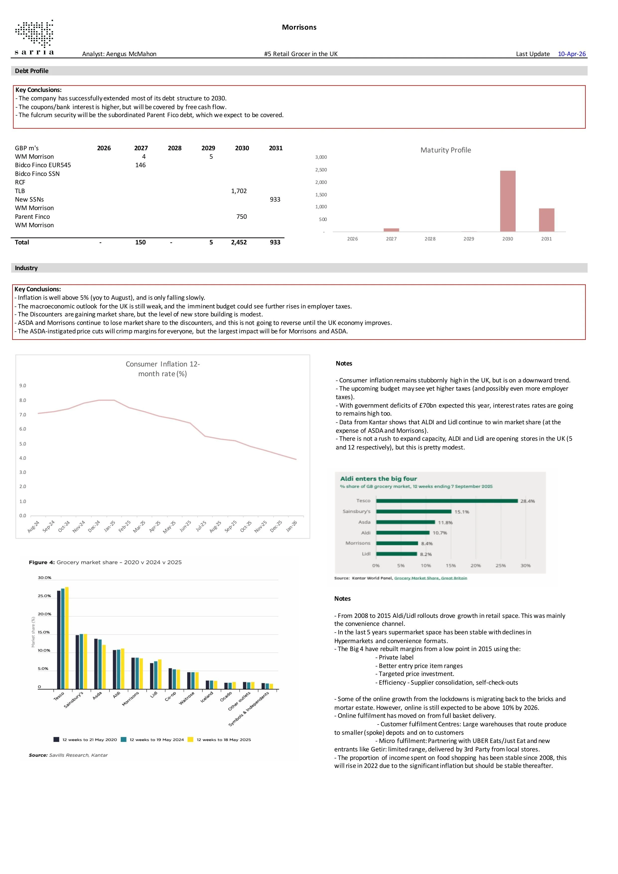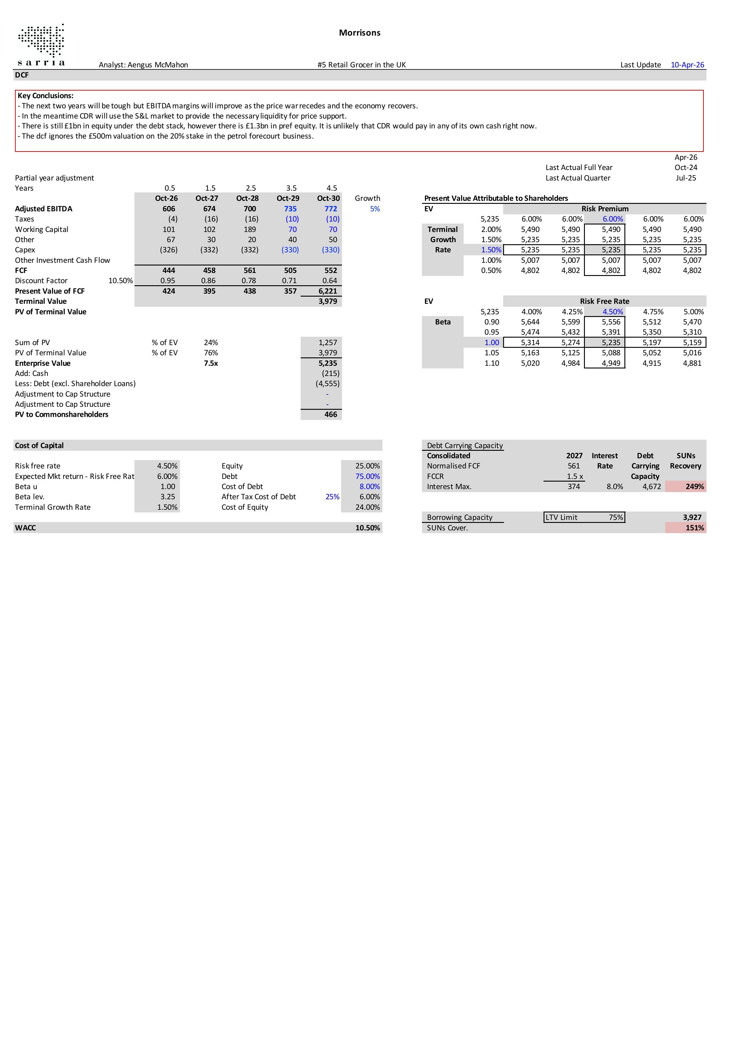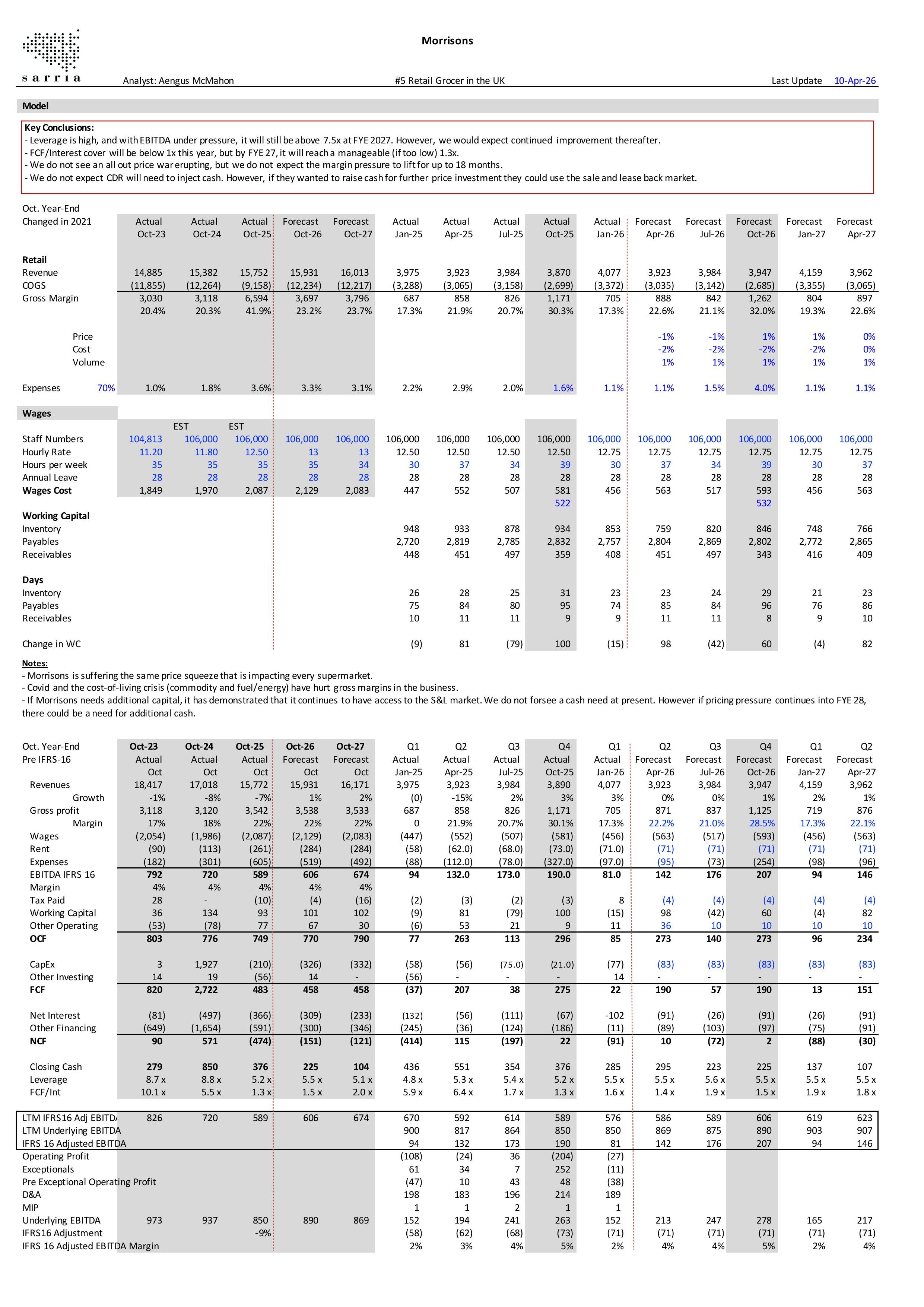 Morrisons is being squeezed by the growth of the discounters and the cost cuts from ASDA. Leverage is already high and will continue to rise in