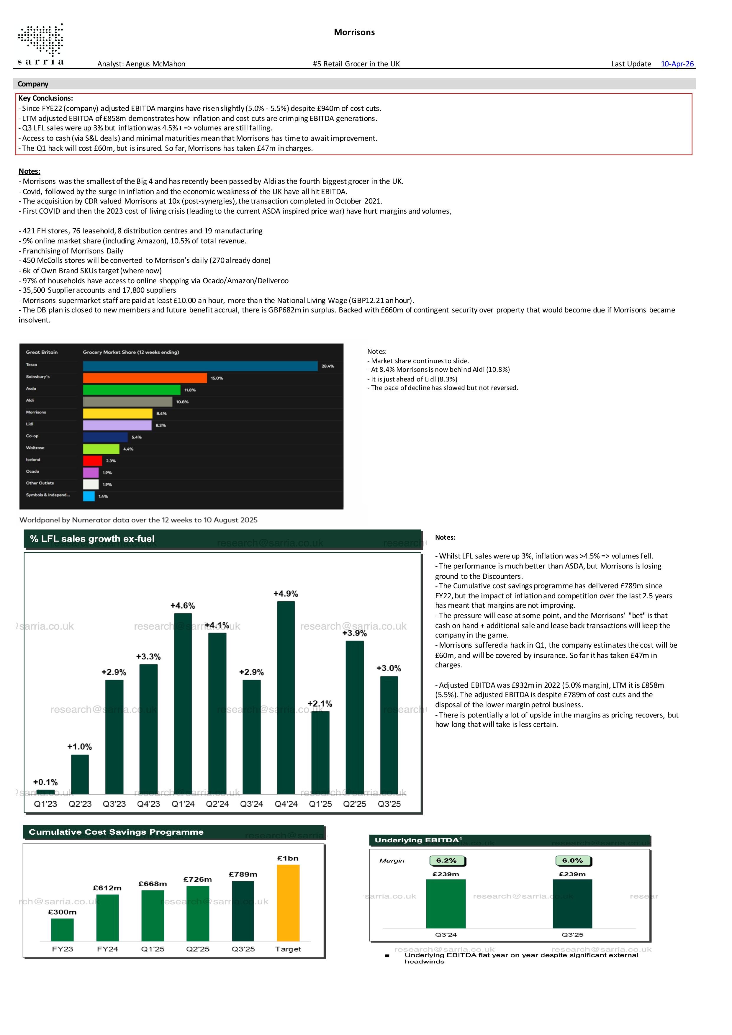 In a tough trading environment, Morrisons has managed to raise YoY EBITDA despite cost-cutting largely being consumed by headwinds from