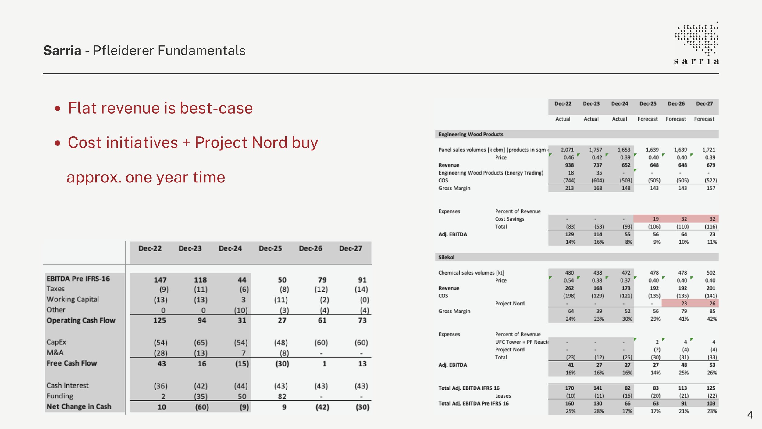 We think Pfleiderer is a good business that has successfully repositioned itself for the premium segment within its industry since 2019. Management will be focused on