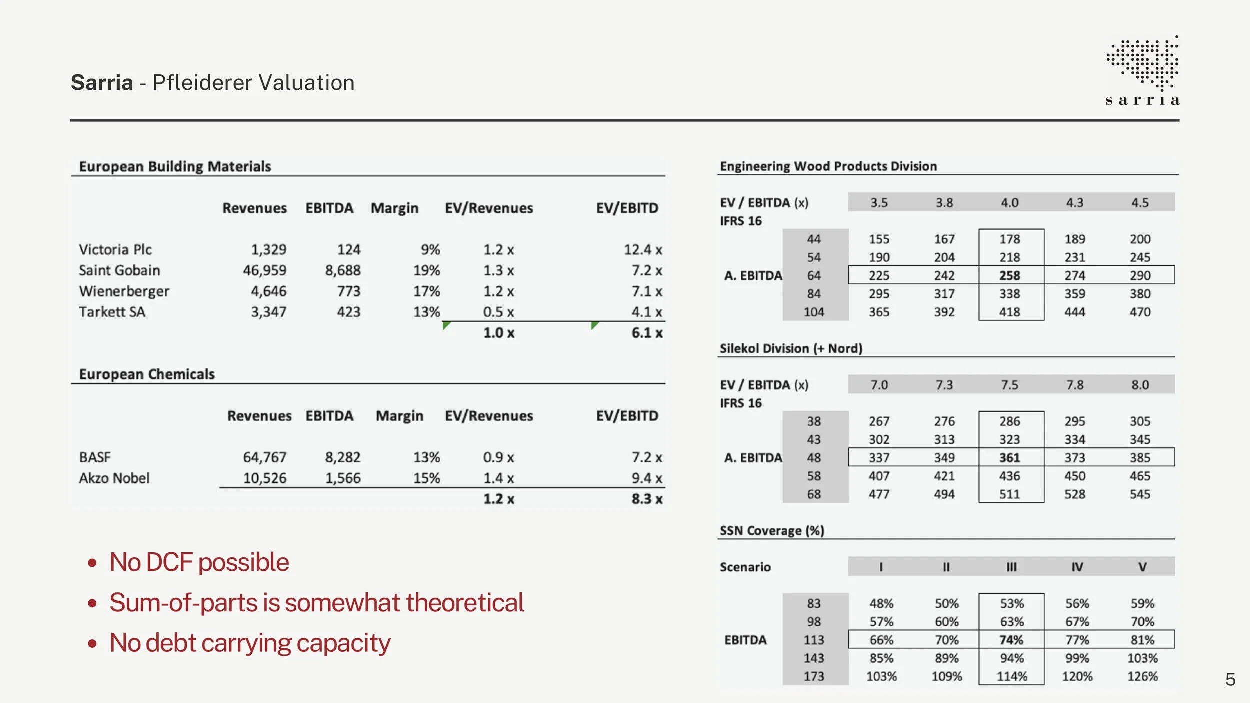 While we think Pfleiderer is a quality business - it is in the wrong place at the wrong time with debt maturities in 2025 and 2026. The company has a quality