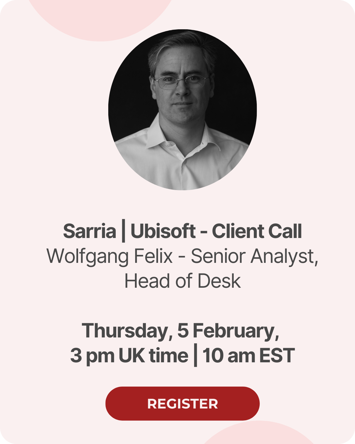 Sarria | UBISOFT - Client Call, Thursday 5 Feb, 3 pm UK | 10 am EST